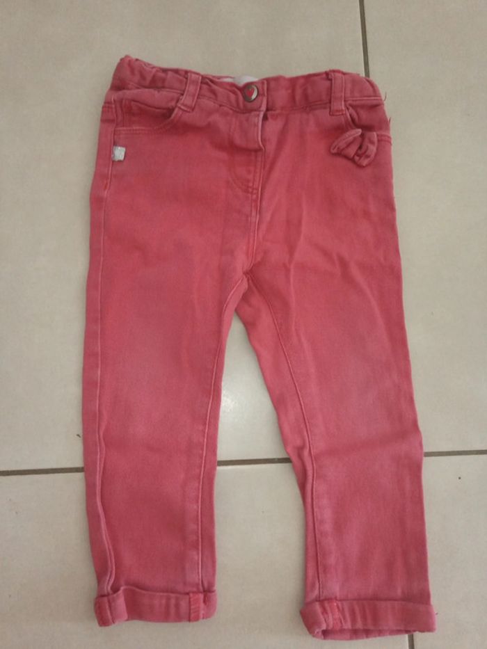 Pantalon rose/rouge, fermeture par pressions, taille élastique réglable En très bon état, taille 18 mois #bertille0401fille18mois