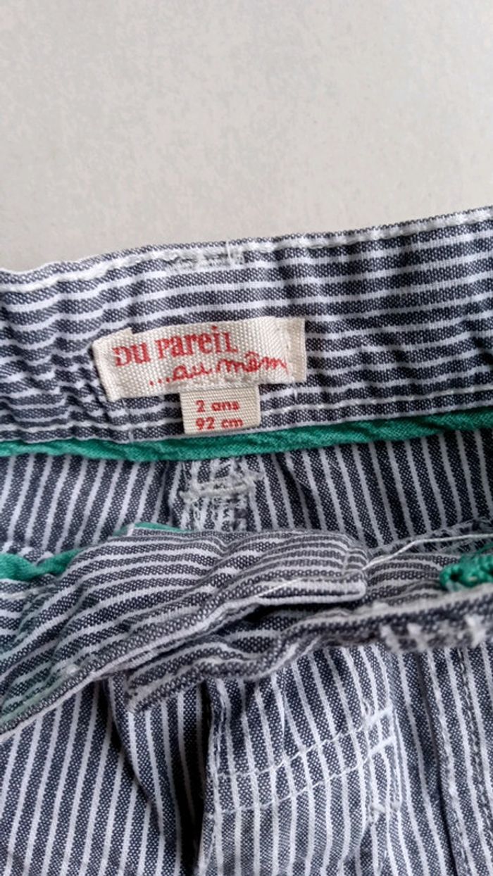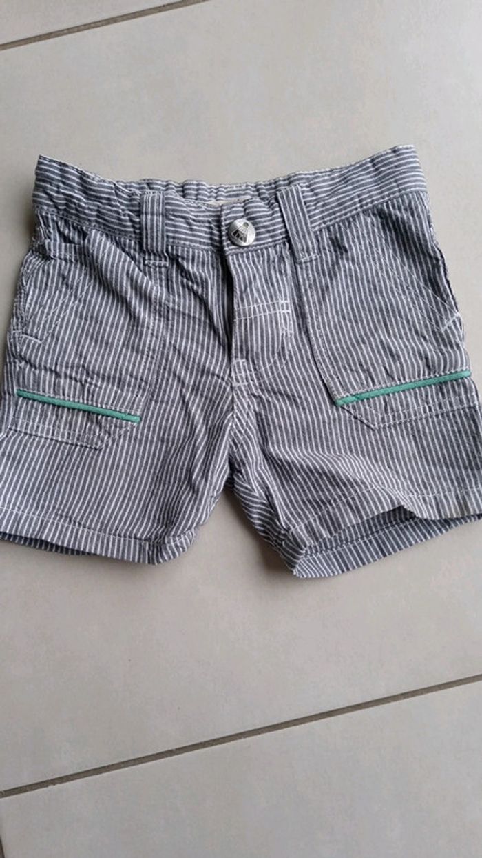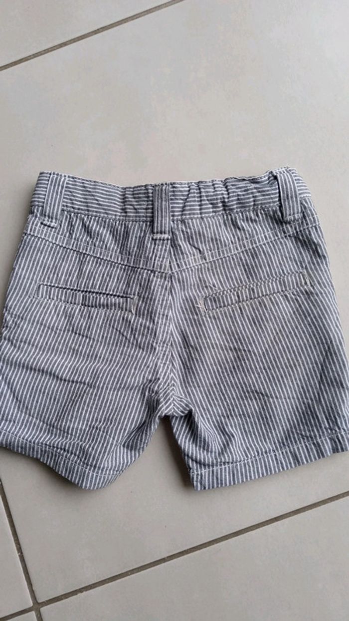 Short rayé gris et blanc taille 2 ans Taille réglable par élastique Légèrement taché au niveau de la poche arrière droite (voir photo) mais reste en très bon état pour une deuxième vie. #bertille0401garcon2ans