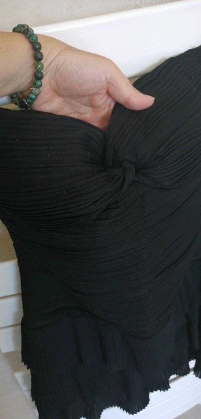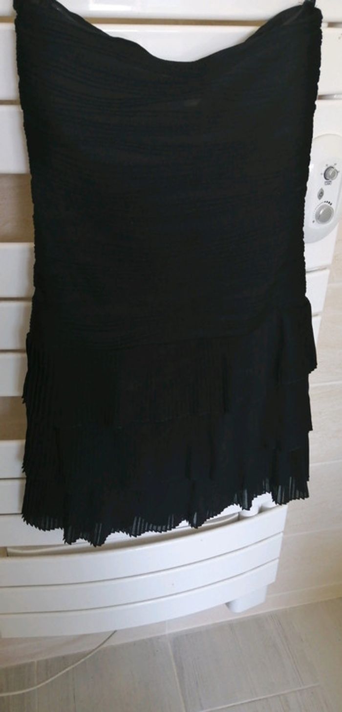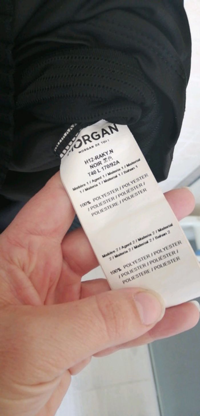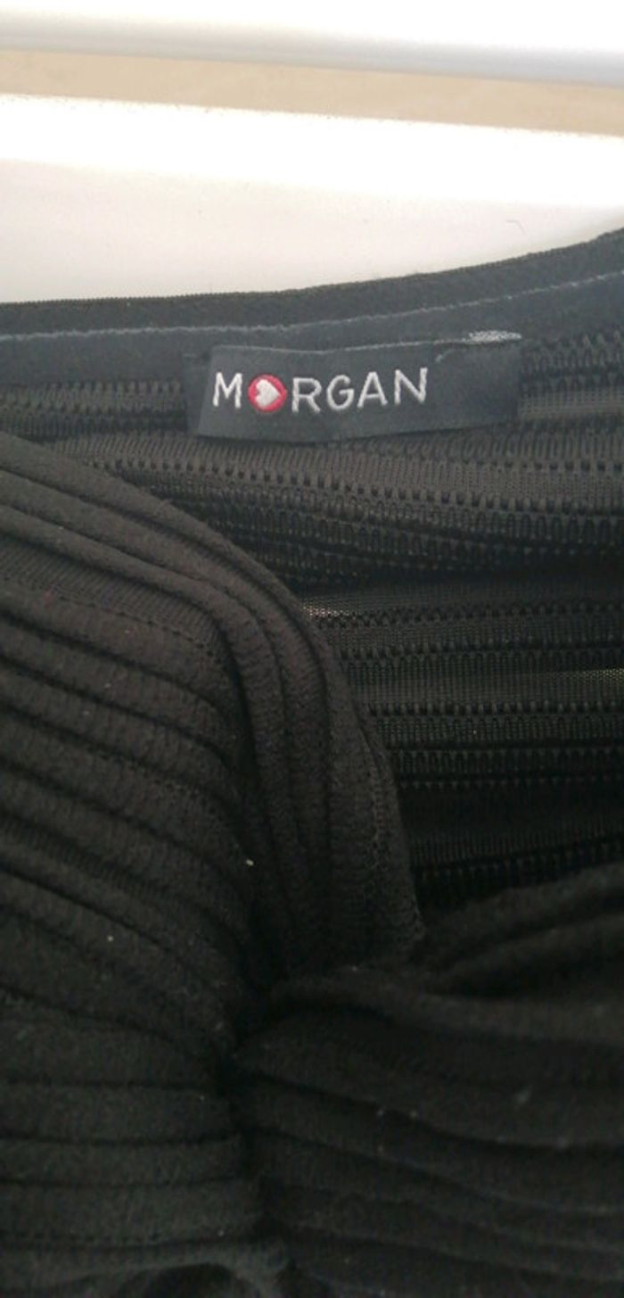 Magnifique robe Morgan noire 👍Parfait etat 😃Taille 40 😎Colorie noire ✌️ZIP de fermeture sur le côté 💪Matière agréable à porter 🙏Rembourrage bustier 🌷Effet de semi transparence à l'arrière