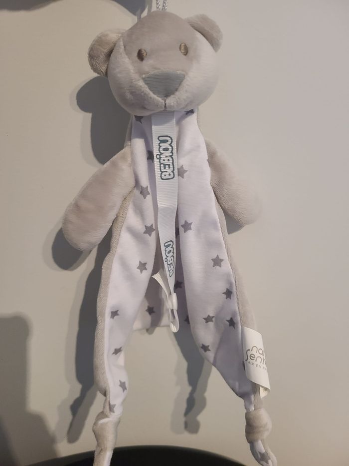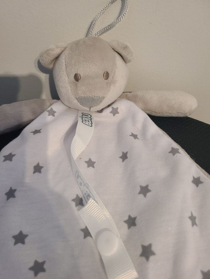 DOUDOU PLAT Nature & Senteurs BEBIOU OURS gris beige blanc étoile 85
