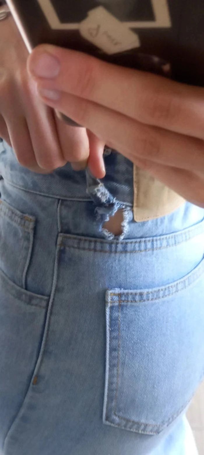 Jean shein Taille 36=S Taille petit!! Plutôt XS ou moins de cuisse que moi... car il me sert ! Troué voir photo!! Taille haute #Taille36 #shein #tiktok #fassions #jean #petit