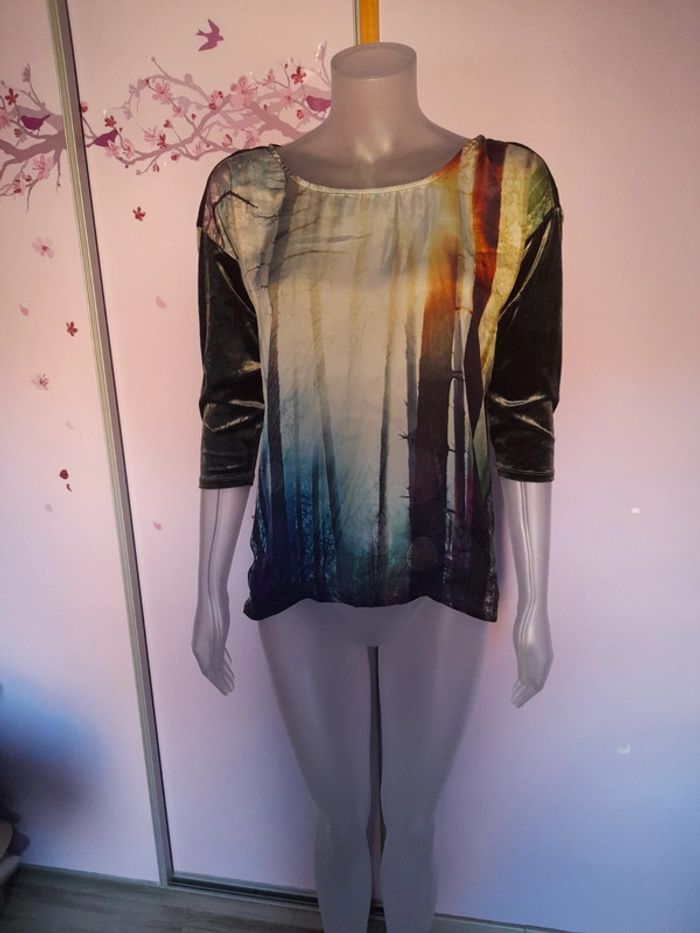 #jessicadebreufemmetailles36 Haut manche 3/4 tissu satiné devant et velours à l'arrière Peu porté
