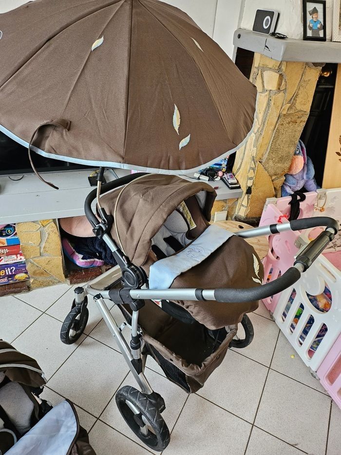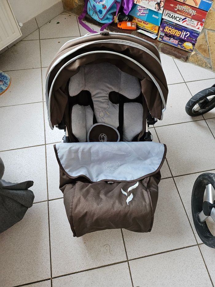 poussette avec maxi cosy, nacelle et assise. utilisee 5 mois pour ma fille, en super etat avec habillage pluie et ombrelle. les roues arrières sont demontables si petite voiture