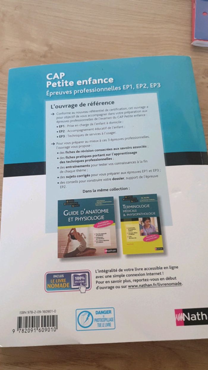 CAP petite enfance épreuves 1,2,3 #ann010203livresecole Abîmé a un coin