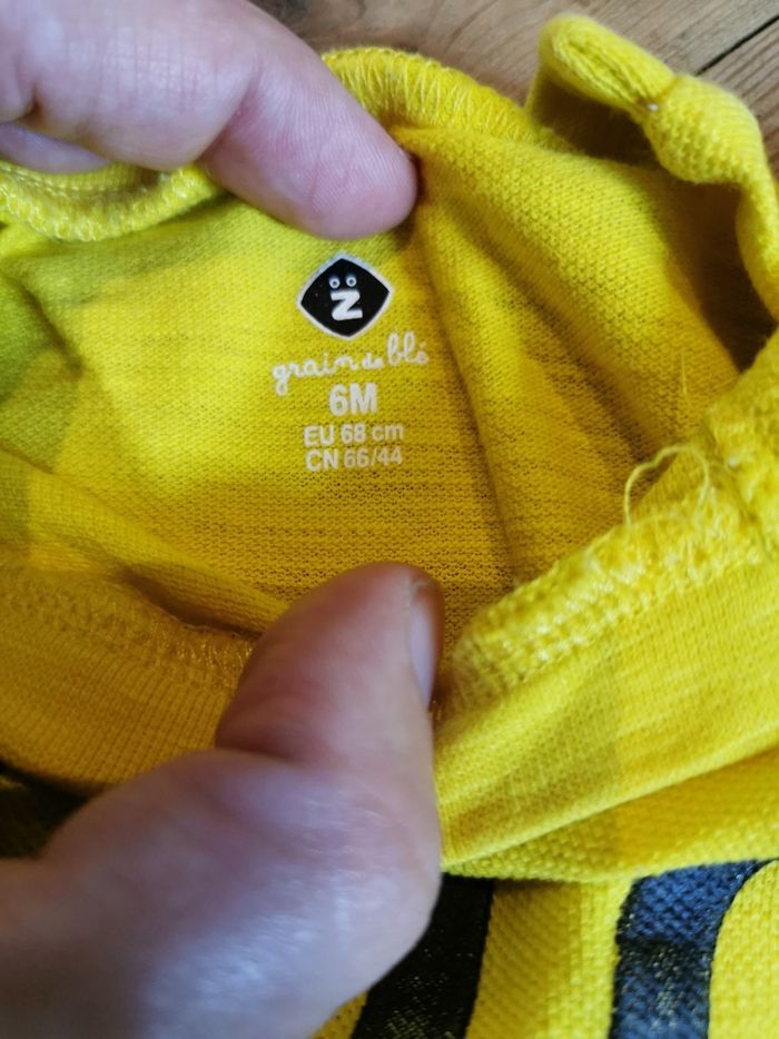 Ensemble t shirt short 6 mois Porté 2 fois Il manque 1 pression au niveau du col comme vu sur la photo 2