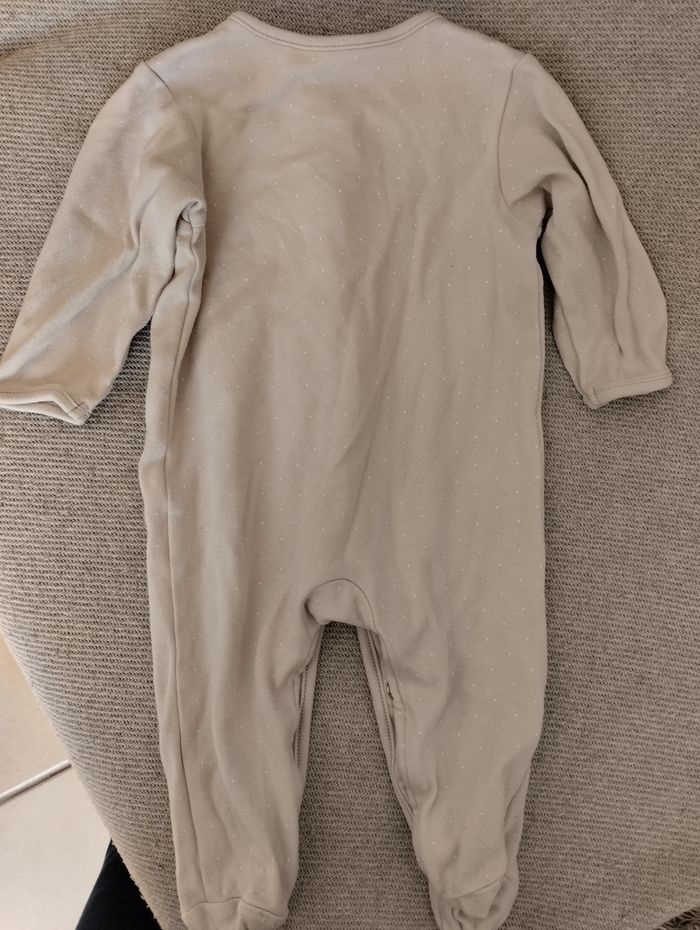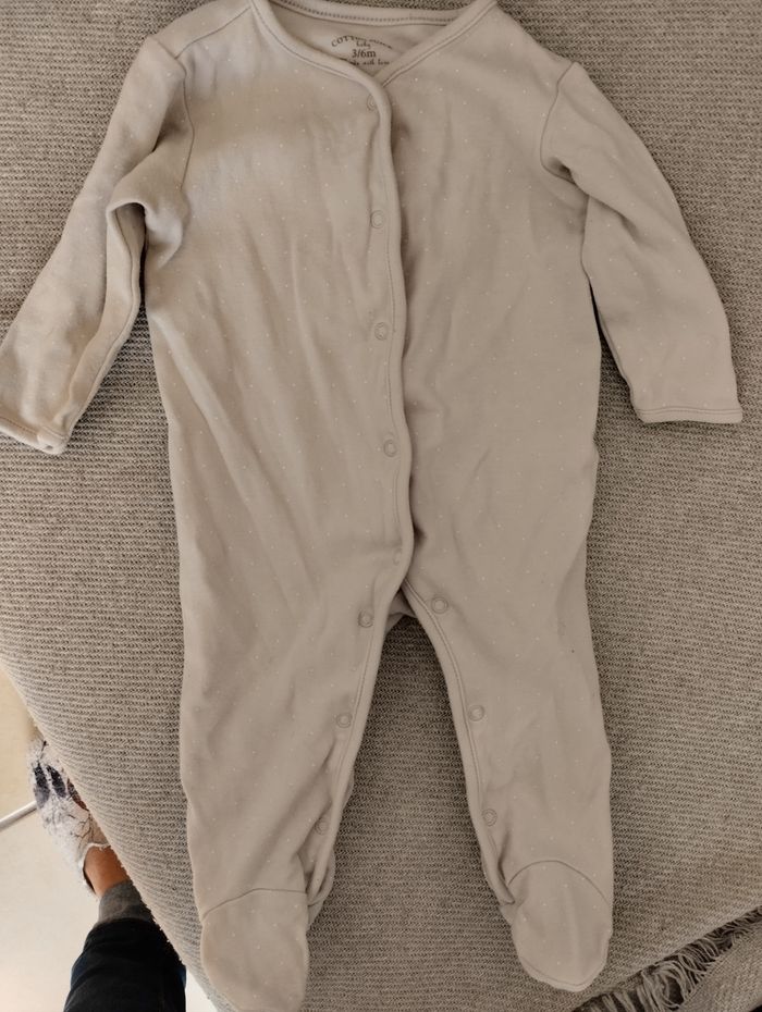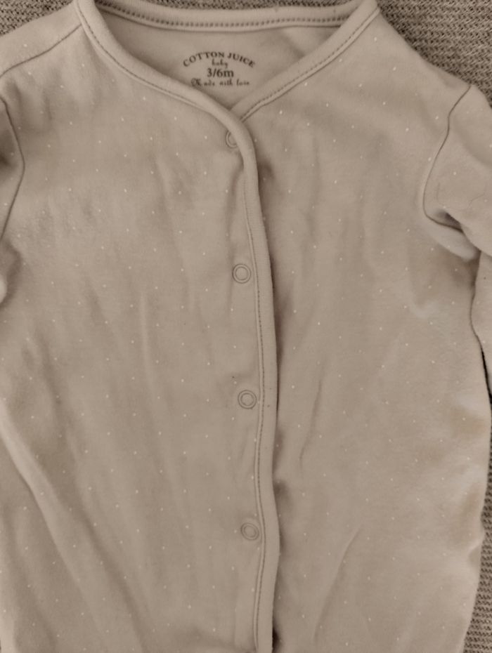 Pyjama coton, couleur beige avec petit pois blancs. Taille 3-6 mois. Marque Cotton Juice.