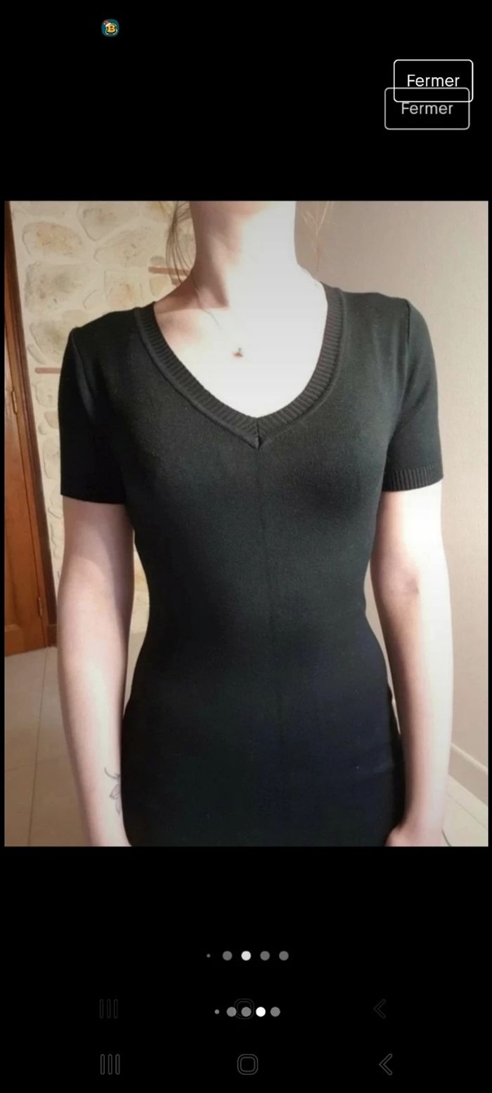 #robe #robepull #pullfin fine #présducorps #moulante #ajustée #noir #colV longueur mi-cuisses #midi #misaison #manchescourtes #taille38 #taille40 assez #stretch #elastique #neuve #classique Ideal pour #fête #soirée ou #quotidien vêtements portés par moi-même taille 40 haut et bas