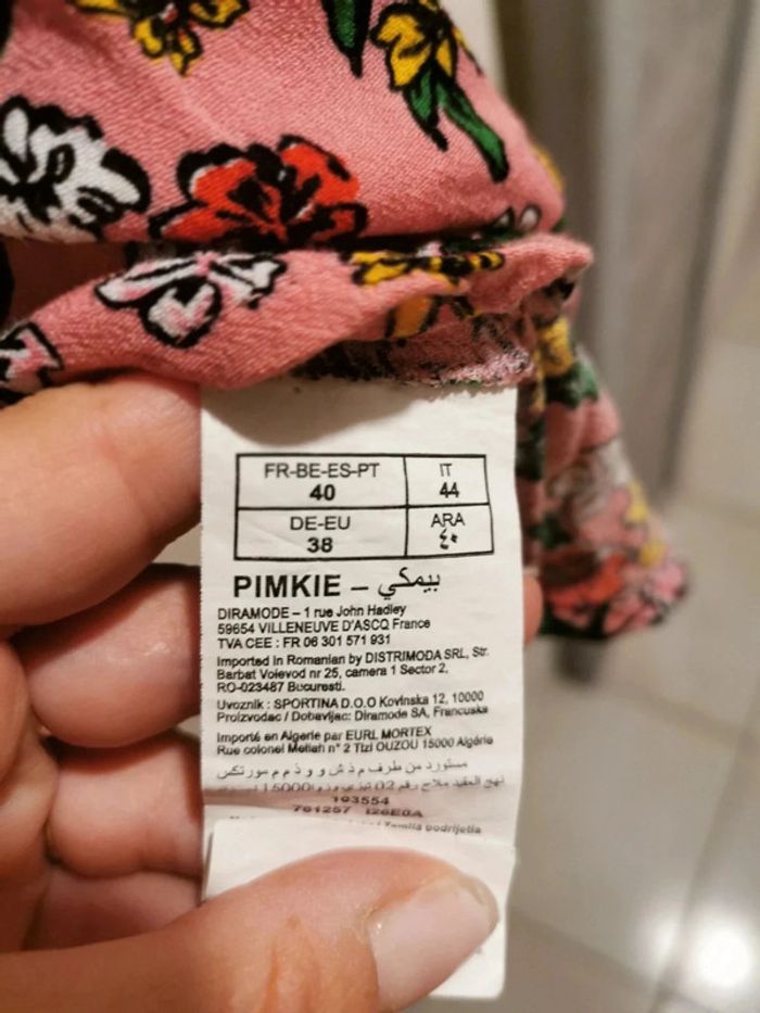 Robe pimkie taille 40 Nouée sous la poitrine Rose à motifs fleurs En très bon état peu portée.