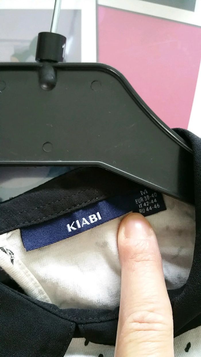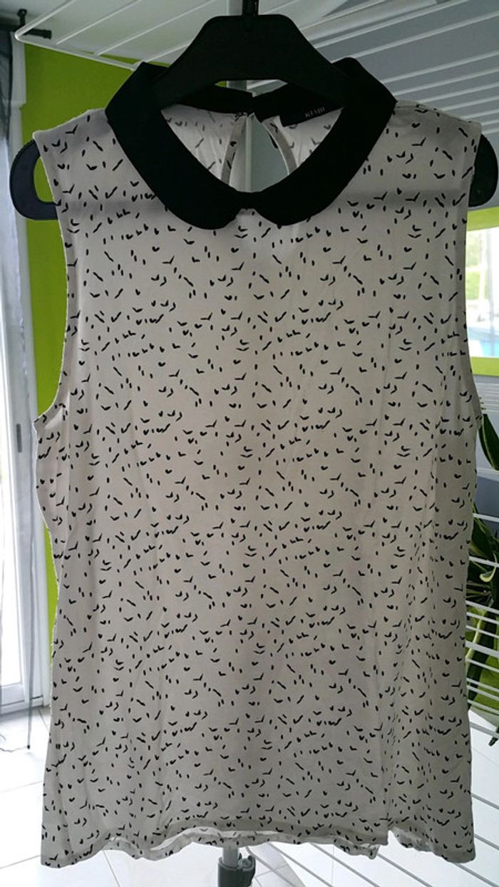 Très beau petit débardeur blanc col noir et motifs noir. Kiabi taille 38 40 En très bon état très peu porté