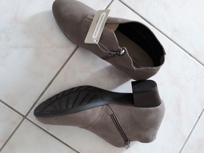 Botillons femme mastic Damart Perfect confort ,neuf avec étiquette, (acheté 99.99 euros), dessus croûte de cuir vachette traité déperlant , Perfect confort qui apporte souplesse et stabilité avec morpho adapté, intérieur semelle cuir et côté textile. #kate9036