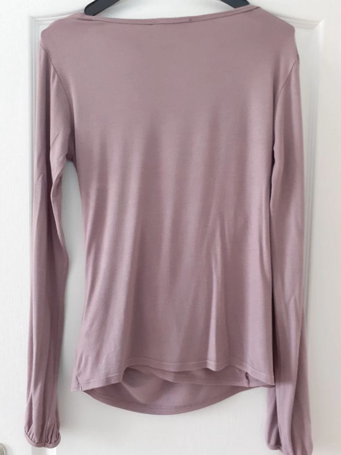 Tee-shirt manches longues femme croisé (de grossesse) devant et manches resserrées. 95 % viscose 5% élasthanne. Hauteur 62 cm Aisselles 48 cm (légèrement pelucheux mais n empêche rien). #kate9036