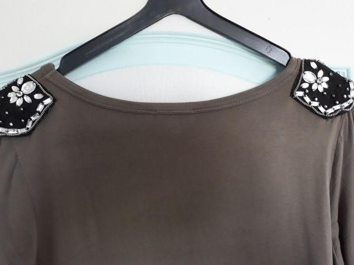 Tee shirt femme manches longues épaules fantaisies avec pièces brillantes 95 %viscose 5% élasthanne #kate9036
